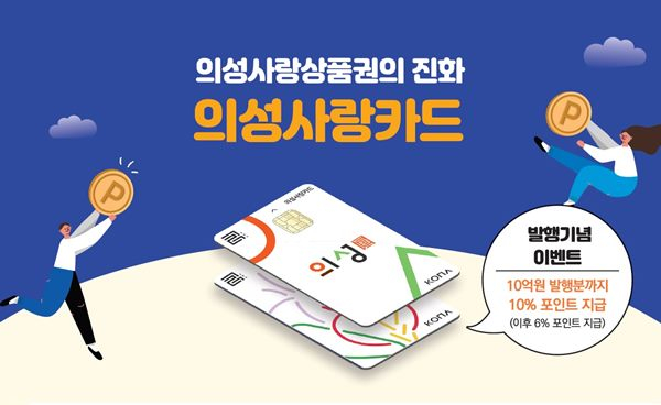 의성군(군수 김주수)은 부정유통 방지와 사용의 편리성 확보를 위해 지난 2월 10일 발행한 의성사랑카드를 발행기념 10% 이벤트 행사로 지금까지 5억3천만원을 판매, 소상공인들의 매출증대에 기여했다고 밝혔다.