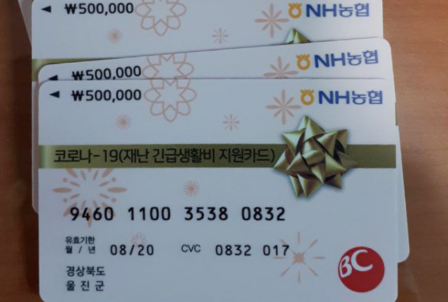 울진군(군수 전찬걸)은 1,692가구에 재난긴급생활비 10억을 온누리상품권으로 지급했고, 지난 4월 22일부터는 461가구에 2억 5천만원을 선불카드로 지급한다.