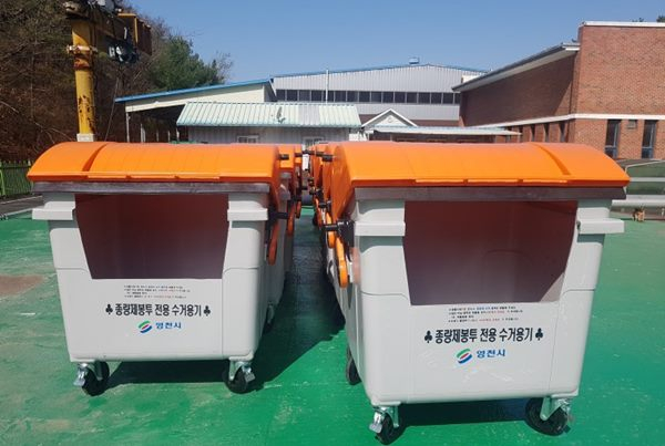 영천시(시장 최기문)는 4월 24일 쓰레기 종량제봉투 배출로 인한 도시환경 개선을 위해 주요 쓰레기 배출장소 100개소에 ‘쓰레기 종량제봉투 전용 수거함’을 시범 설치했다고 밝혔다.