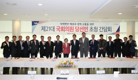 포항시는 지난 4월 25일 포스코 국제관에서 포항 시정현안 설명과 코로나19 장기화에 따른 위기극복 등을 위해 지역 국회의원 당선인 초청 간담회를 열었다.