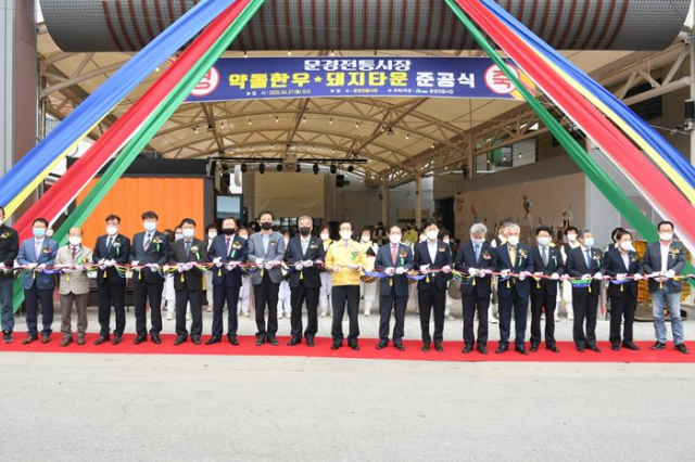 문경시는 전통시장 시설현대화사업으로 추진한 문경전통시장 약돌한우·돼지 타운 조성 준공식을 4월 27일 12시에 문경전통시장에서 개최했다.