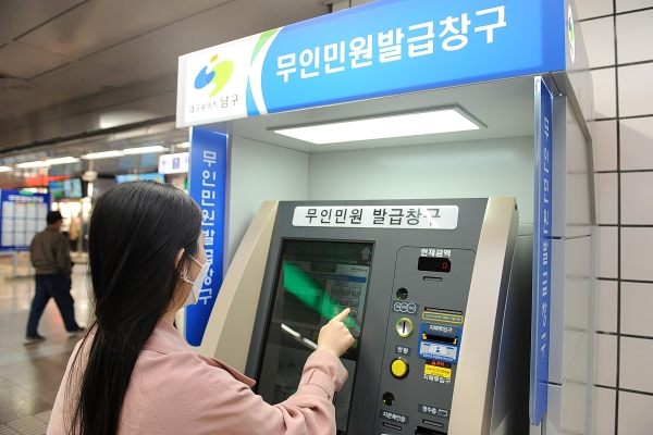 한편 남구는 구청 종합민원실을 비롯하여 남대구세무서, 보건소 등 지역 내 총 7대의 무인민원발급기를 운영 중이다.