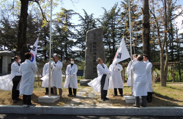 | ↑↑ 미대 여봉산 4․26만세운동 애국지사 추모 기념비와 태극기 게양 |