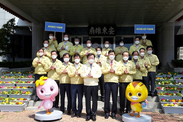 권영세 안동시장은 중앙재난안전대책본부 회의를 마친 후 간부 공무원들과 함께 존경과 덕분을 상징하는 수어 동작을 하며 코로나19 대응에 헌신하는 의료진에게 응원의 메시지를 전했다.