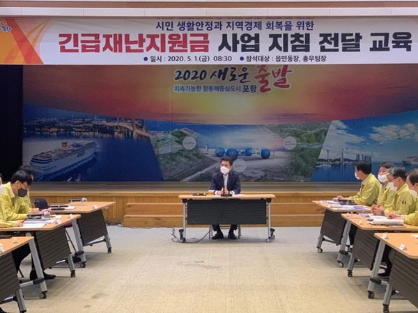 포항시는 지난 5월 1일, 긴급 재난지원금을 신속히 지급하기 위한 ‘긴급재난지원금 지급 사전준비회의’를 개최했다.