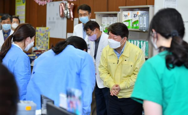 권영진 대구시장은 계명대 대구동산병원을 방문해 의료진과 근무자를 격려했다.