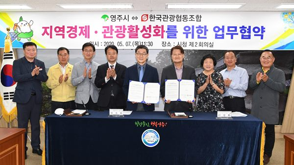 영주시는 지난 5월 7일 영주시청에서 장욱현 영주시장을 비롯한 이정환 이사장, 임정애 동백여행사 대표 등이 참석한 가운데 영주시와 한국관광협동조합간 업무협약 체결식을 개최했다.