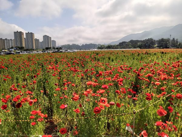 김천시에서는 지난해 한국토지주택공사와 협의하여 유휴대지를 무상임대하고 2ha가량의 대형꽃밭을 조성하였다. 코스모스와 해바라기가 지는 10월 중순경 꽃양귀비를 파종하였으며 시민들의 관심과 사랑에 힘입어 월동 후 5월초 개화를 시작하였다. 다음주 15일경 개화가 절정에 이를 것으로 예상되어 관계부서에서는 시민들이 봄 추억을 담을 수 있도록 포토존과 벤치를 설치한다고 밝혔다.