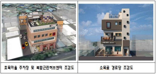 | ↑↑ 효목마을 주차장 및 복합근린허브센터 및 소목골 경로당 조감도 |