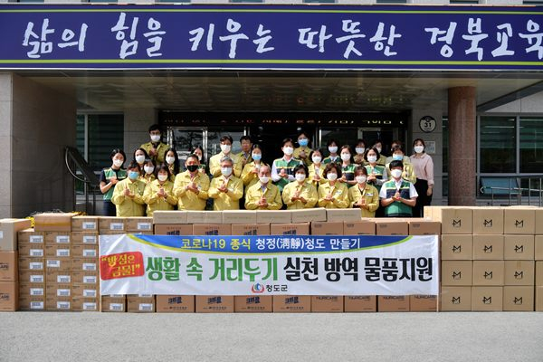 청도군(군수 이승율)은 5월 12일 청도교육지원청에서 등교 개학에 대비하여 방역물품 전달식을 가졌다.