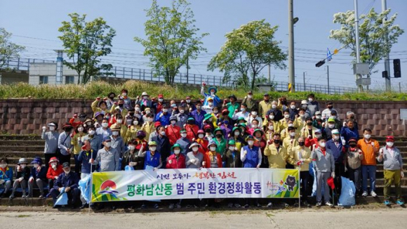 김천시 평화남산동(동장 양준영)은 지난 5월 12일 해피투게더 김천운동의 일환으로서 청결하고 깨끗한 환경을 조성하기 위하여 직지천 일대에서 범 주민이 참여하는 환경정화활동을 대대적으로 실시했다.