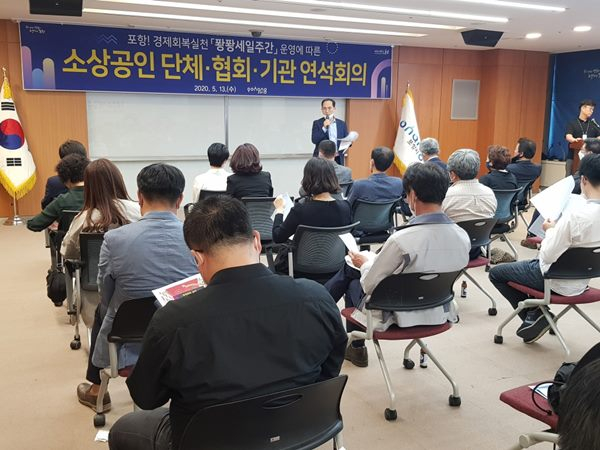 포항시는 5월 13일 경제회복 실천 「퐝퐝 세일주간」 운영과 관련하여 소상공인 단체와 기업 및 상공기관, 관변단체, 읍면동 직원 등 60여 명이 참석한 가운데 연석회의를 개최했다.