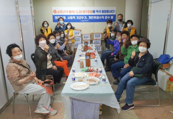 대구 북구 노원동 주민 승윤배씨는 5월 13일(수) 주민 10여 명과 함께 가정의 달을 맞아 어르신께 감사의 마음으로 수육, 과일 등을 대접하고 관내 경로당 8개소에 마스크 2,000장과 음료수 300병을 전달했다.