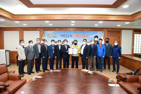 김천시 체육인대표, 상인회 대표 등 12명은 지난 5월 13일에 김충섭 시장, 김세운 시의회의장을 잇따라 방문하고 상무프로축구단 김천 유치를 희망하며 유치 건의문을 전달했다.