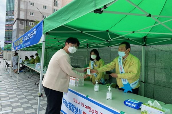 이날 정부「긴급재난지원금」신청을 위해 현장을 찾은 군민들에게 대기시간을 이용해 도로명주소를 홍보하면서 홍보용 리플릿과 휴대용 손세정제를 배부하며 도로명주소 사용의 생활화와 위급상황 발생 시 도로명주소를 사용하도록 안내했다.
