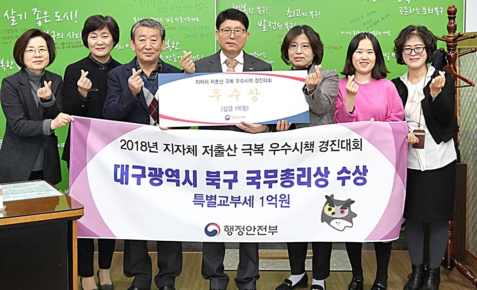 대구시 북구청(청장 배광식)이 ‘2018 지자체 저출산 극복 우수시책 경진대회’에서 국무총리상을 수상했다.