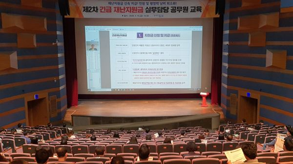 이날 회의는 읍면동 총무팀장(추진반장)‧서무 담당자, 본청 파견 인력 49명 등 약 150여 명이 참석한 가운데 열렸으며, 시스템 사용법 및 이의신청 절차 등을 중심으로 한 재난지원금 시스템 교육을 시작으로 긴급재난지원금 개괄 설명, 이의신청 주요 case 안내 및 질의응답 순으로 진행되었다.