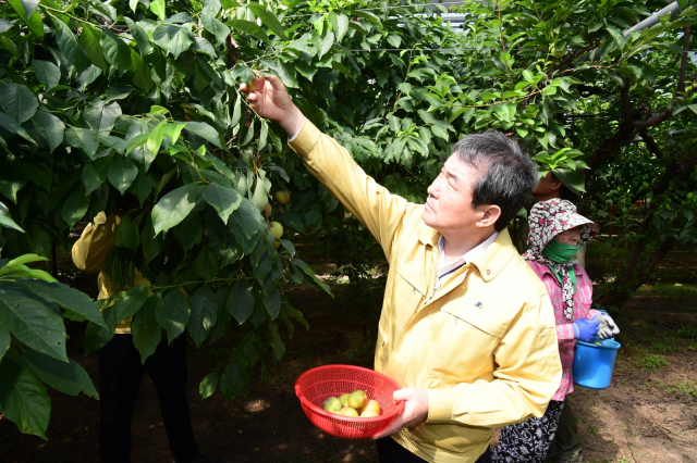 김충섭 김천시장은 지난 5월 20일 개령면 시설자두농가와 모내기 중인 벼 농가를 방문해 직접 자두 수확과 이앙기에 탑승하여 영농현장의 애로사항을 청취하고 격려했다.