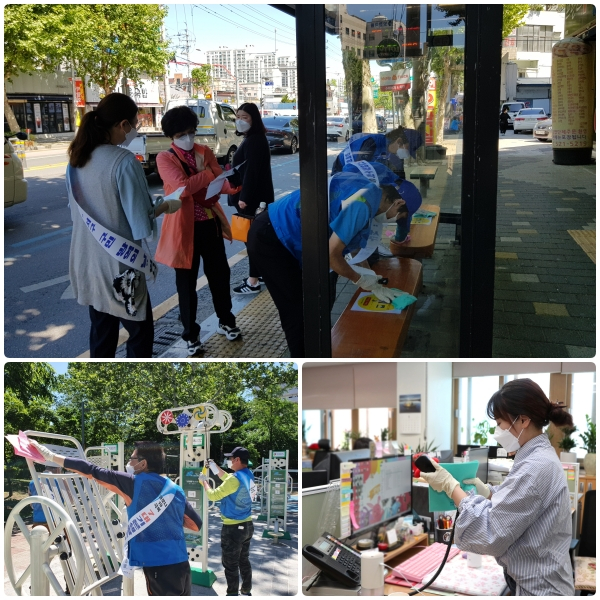 ↑↑ 서구 방역의날 방역자업 (위)내당2.3동 구.대영학원건너 버스정류장. (아래 좌)내당4동 감삼공원. (아래 우) 문화홍보과. |