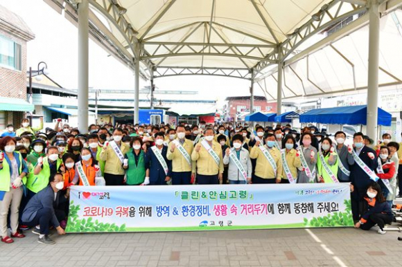 이에 따라 5월 22일 10시 군청 공무원과 이장연합회, 새마을단체회원, 자원봉사센터, 전통시장 상인회등 500여명이 참여한 가운데 「클린&안심 고령」 캠페인 실천을 위한 일제방역·대청소를 전개하였다.