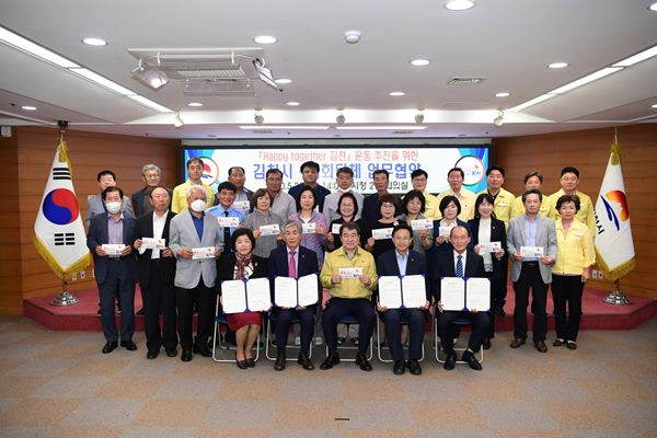김천시(시장 김충섭)는 대한노인회 김천시지회, 김천시 여성단체협의회, 김천시새마을회, 바르게살기운동 김천시협의회와 5월 25일 김천시청 2층 회의실에서 「Happy Together 김천」운동 추진의 유기적 협력체계 구축을 위한 업무협약을 체결했다.