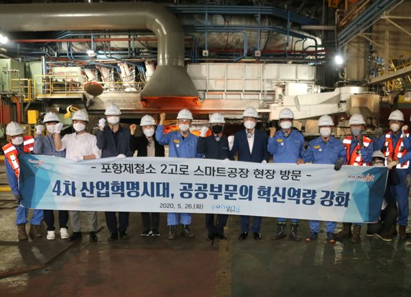 이강덕 포항시장은 지난 5월 26일 4차 산업혁명 기술을 융합하여 구축한 포항제철소 스마트공장(2고로)을 방문했다.
