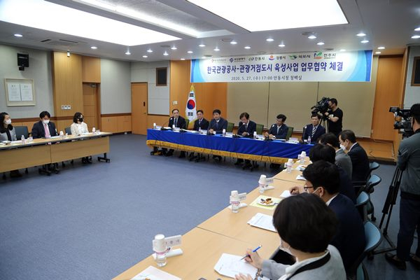 안동시는 지난 5월 27일 오후 5시 안동시청 청백실에서 한국관광공사와 5개 관광거점도시가 참여하는 가운데 관광거점도시 육성사업 상호협력을 위한 업무협약을 체결했다.