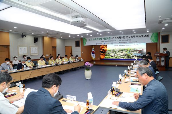 안동시는 5월 28일 오후 2시 시청 청백실에서 지난 해 12월말에 정부 공모사업으로 선정된 ‘노지 스마트농업 시범사업’ 기본계획수립 용역 착수보고회를 가졌다.