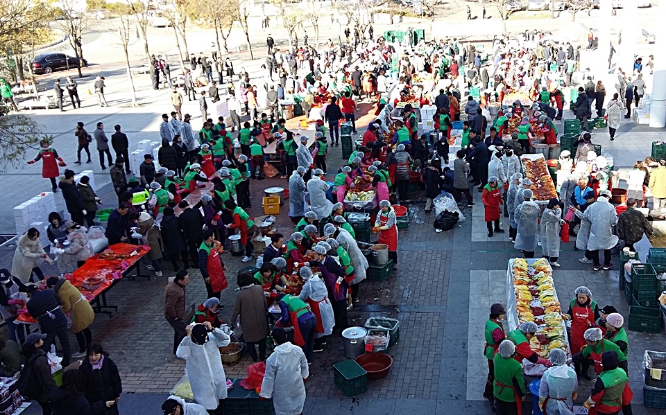 김장 행사는 동구민간사회안전망위원회(위원장 김재문)가 주관하고 대구 동구청 과 한국가스공사의 후원으로 새마을협의회, 새마을부녀회, 각동 민간사회안전망위원 등 동구주민 500여명과 한국가스공사임직원 20여명, 유니드공익재단 직원 10명, K2공군부대 군장병 50여명 등이 함께 참여해 김장김치 3,200포기를 버무렸다.