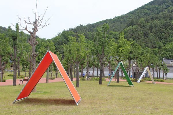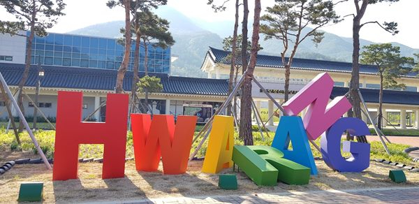 대형 글자 조형물은 화랑(HWARANG)이라는 영어 알파벳 하나하나를 자유롭게 던져진 형태로 7가지의 무지개 색감과 포인트를 살려 청도신화랑풍류마을의 상징성을 부여함은 물론 방문객의 희망의 포토존을 마련하였다.