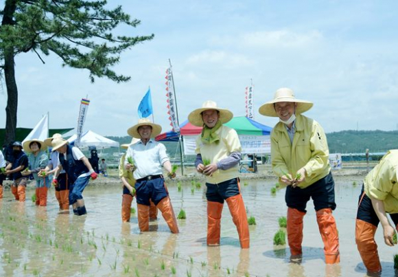 이날 행사는 최기문 영천시장을 비롯한 시의원과 농업관련 유관기관장, 농민회 회원 등 50여명이 참석한 가운데 농민의례를 시작으로 전통제례의식, 축사 등 다채로운 일정으로 풍년농사기원제를 진행했고, 이어 준비된 장화를 신고 전통방식으로 손 모심기 시연을 하는 뜻깊은 자리를 함께 했다.
