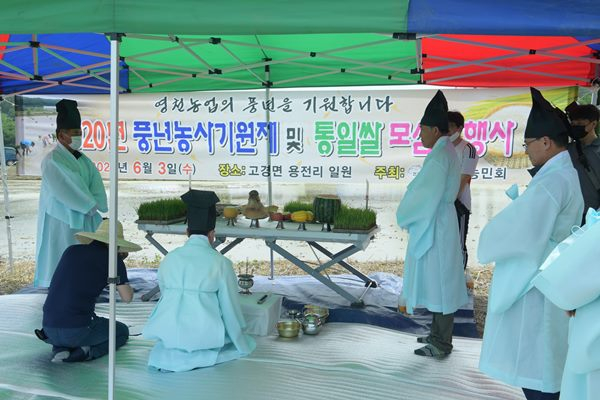 영천시 농민회(회장 김주활)는 6월 3일 고경면 용전리 들판에서 올 한해 풍년을 기원하는 풍년농사기원제와 손 모심기 행사를 개최했다.