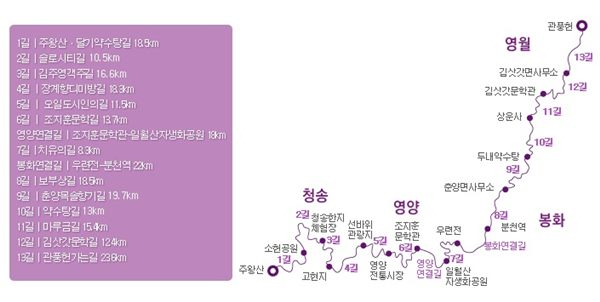 | ↑↑ 영양군 외씨버선길 구간도 |