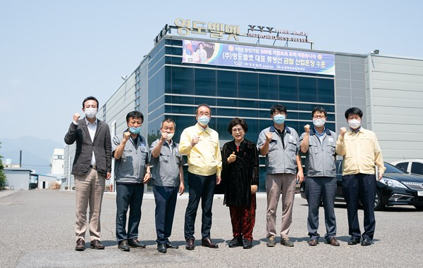 장 시장은 지난 6월 8일에 벨벳섬유 제조업체 ㈜영도벨벳(대표 류병선)과 알루미늄 압출제조‧금형가공 업체인 ㈜미래인더스(대표 황경희)를 방문하여 그간 코로나19로 어려움은 없었는지 근로자들과 소통하며 현장의 다양한 목소리를 듣고, 격려하는 시간을 가졌다.