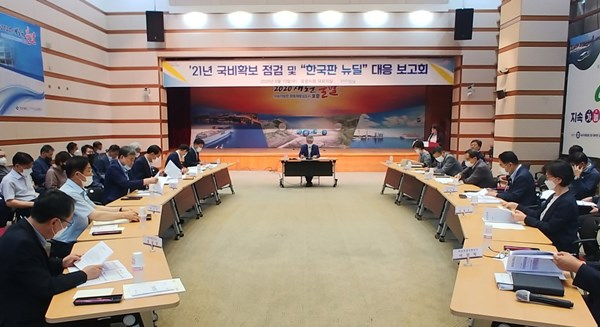 포항시는 각 부처 예산(안)이 마무리되고 기획재정부 심의가 시작되는 이달 초순을 가장 중요한 시기로 판단하고, 시 주요 현안사업의 부처 반영 확인 및 기획재정부 대응 방안을 마련하기 위해 6월 10일 포항시청 대회의실에서 ‘2021년 국비 확보 점검 및 한국판 뉴딜 대응 보고회’를 가졌다.