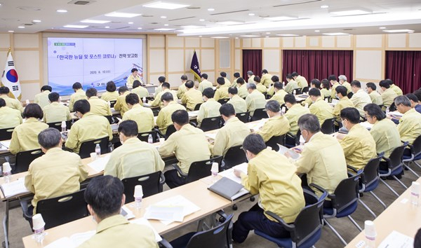 특히, 코로나19 사태 이후 변화될 경제·사회 구조에 대비한 ‘한국판 뉴딜’과 ‘포스트 코로나’ 대응 시책을 발굴하고 부서간 공유를 통해 협조사항, 추진방향 및 문제점에 대한 해결방안 등을 논의하는 자리가 되었다.