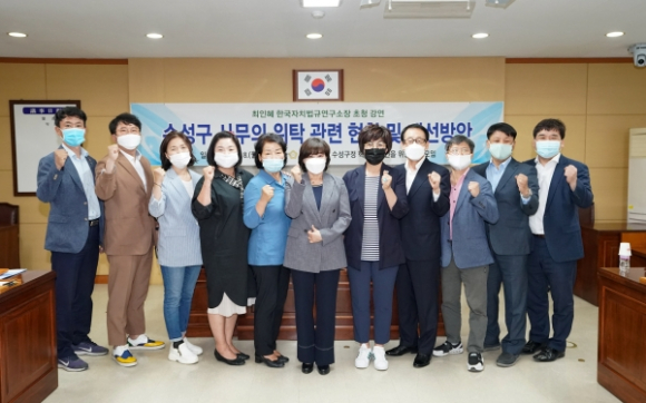 | ↑↑수성구의회 의원연구단체는 전문가를 초청하여 ‘수성구 사무의 위탁 관련 현황 및 개선방안’이라는 주제로 특강을 개최했다. |