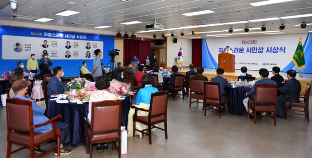 대구시는 6월 11일 오후 2시 대구시청(본관) 10층 대회의실에서 권영진 대구시장과 수상자, 수상자 가족들이 참석한 가운데 ‘제43회 자랑스러운 시민상’ 시상식을 개최한다.