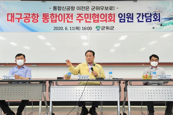 군위군(군수 김영만)은 6월 11일, 군위 여성회관 회의실에서 ‘대구공항 통합이전 주민협의회’ 임원 간담회를 갖고 대구공항 통합이전사업에 대한 소통의 시간을 가졌다.