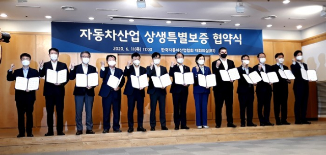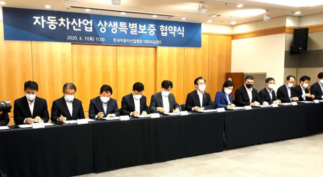 대구시에 따르면 6월 11일 오전 한국자동차산업협회에서 정부와 지자체, 완성차 업계 등이 함께 모여 ‘자동차산업 상생특별보증 협약식’을 갖고 5천억원 이상의 자동차 부품기업 금융지원 상생 프로그램을 신설키로 했다.