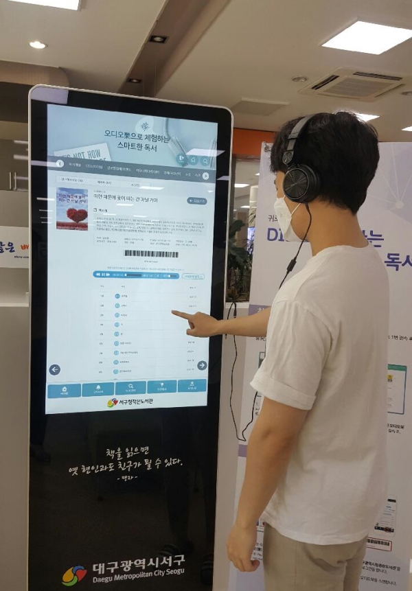 대구 서구청(구청장 류한국)은 이달부터 구립도서관과 서구청 작은도서관에서 책 내용을 음성으로 들을 수 있는‘오디오북 키오스크(무인단말기) 서비스’를 실시한다고 12일 밝혔다.