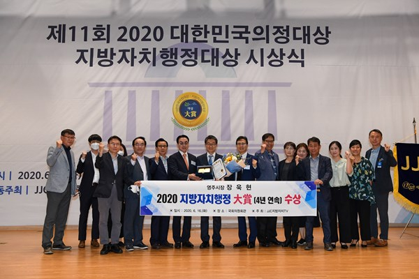 경북 영주시(시장 장욱현)는 6월 16일 국회의원회관 대회의실에서 개최된 ‘2020 지방자치행정대상’ 시상식에서 지방자치행정대상을 수상했다고 밝혔다.