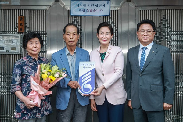 배지숙 의장은 달서구 송현동에 위치한 황정태 참전유공자 댁을 방문하여 나라를 위해 희생하신 국가유공자분들에 대한 존경과 감사의 마음을 전달하고 직접 국가유공자 명패를 부착했다.