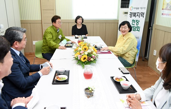 경상북도는 아이돌봄 이용실적이 코로나19 이전 수준을 회복한 유일한 광역자치단체이다. 우수사례로 선정된 경북도 돌봄현장을 둘러보기 위해 6월 19일 이정옥 여성가족부장관이 안동시 건강가정지원센터를 찾아 현장의 애로사항을 파악하고 발전방향에 대한 의견을 듣는 시간을 가졌다.