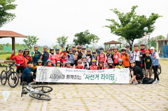 구미시(시장 장세용)에서는 지난 6월 20일 낙동강체육공원 자전거대여소주차장에서 “구미시 자전거교실 사랑봉사연합회”(약칭 구자사) 회원 등 50여명이 참석한 가운데 자전거 소통 라이딩을 실시하였다.