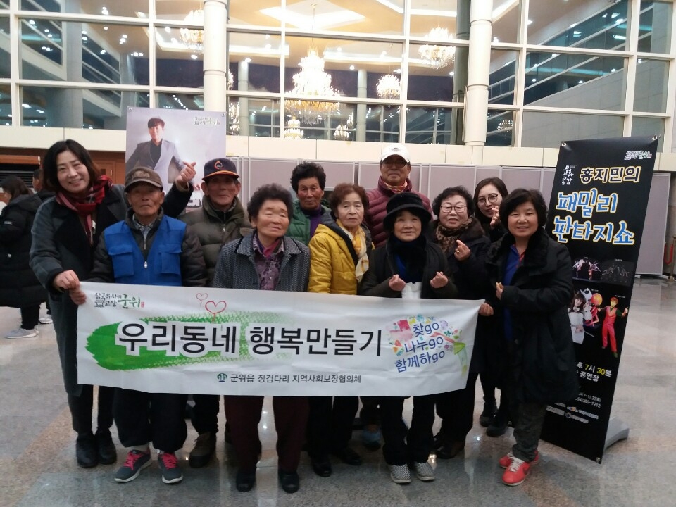 군위읍과 군위읍 지역사회보장협의체(이하 '읍 협의체')는 지난 22일 협의체 위원들의 차량봉사와 세교 칼국수의 저녁식사 후원 및 문화 체육시설사업소의 공연(홍지민의 ‘패밀리 판타지 쇼’) 지원으로 민관이 협력하여 ‘문화나들이 사업’을 추진했다.