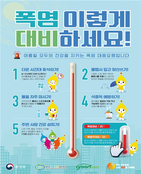 기상청은 올 여름철 평균 기온이 평년보다 높을 것으로 예상하고 폭염일수 또한 증가하여 역대 최대의 폭염 피해를 예상하고 있다.