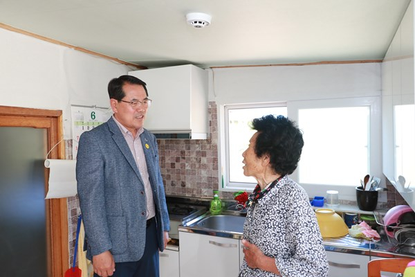 피해가구에 대한 싱크대 지원을 완료한 후 지난 6월 22일 전찬걸 군수는 태풍피해를 입은 가구를 직접 방문해 싱크대 교체현장을 점검하고 피해를 입은 군민들을 위로하며 애로사항을 직접 청취하였다.