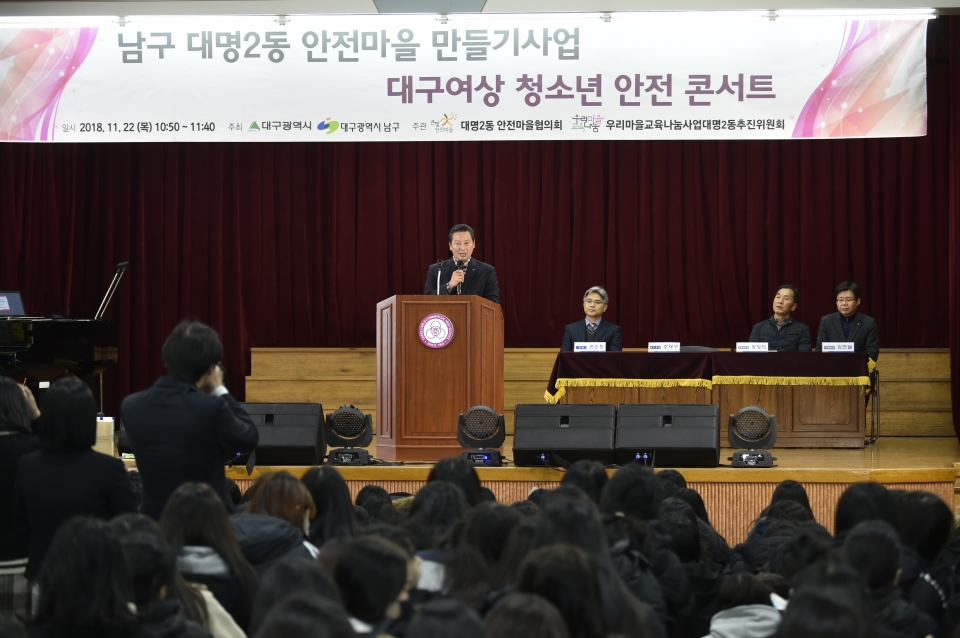 대구 남구청(구청장 조재구)은 지난 22일, 대구여자상업고등학교에서 대명2동 안전마을 만들기 사업의 일환으로, '청소년 안전콘서트'를 개최했다고 밝혔다.