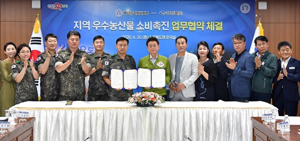 경상북도는 지난 6월 30일 도청에서 코로나19로 어려움을 겪고 있는 지역경제 활성화를 위해 제5군수지원사령부(사령관 이갑수, 이하 5군지사)와 군급식 농산물, 생필품 등 지역 우수농산물 소비촉진 업무협약을 체결했다.
